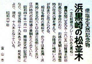富山県指定天然記念物に指定されている"古志の松原"は岩瀬地区から