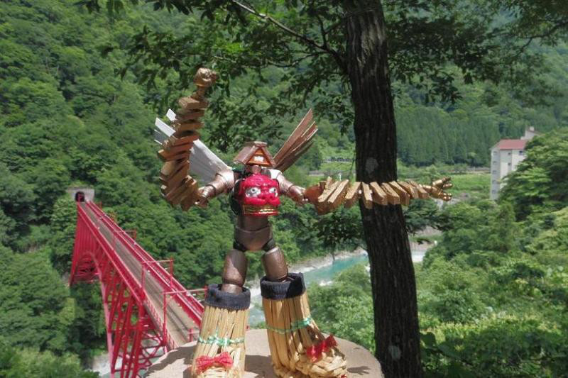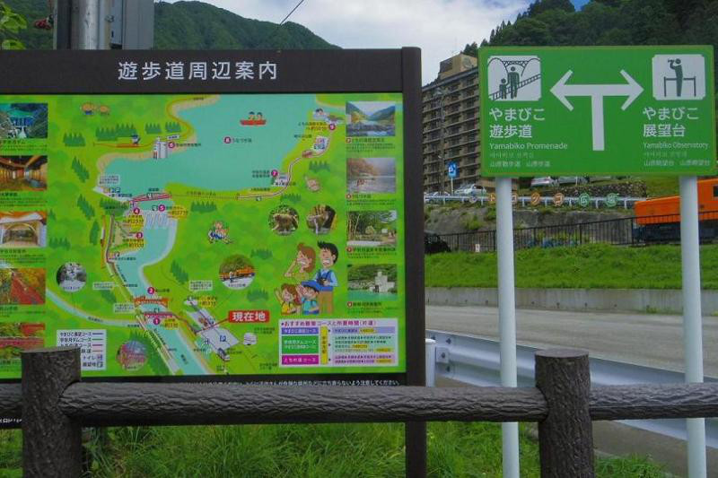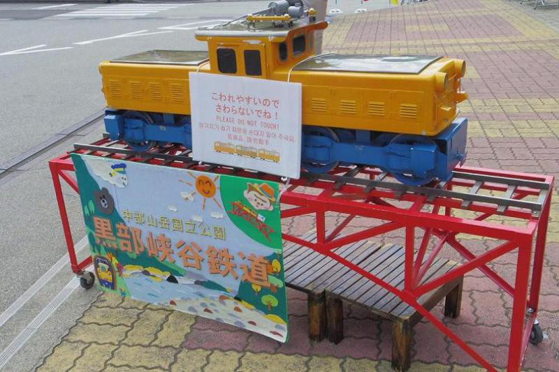 黒部峡谷鉄道宇奈月温泉駅前では、記念撮影用のトロッコ電車の大型模型がお出迎えしてくれました。