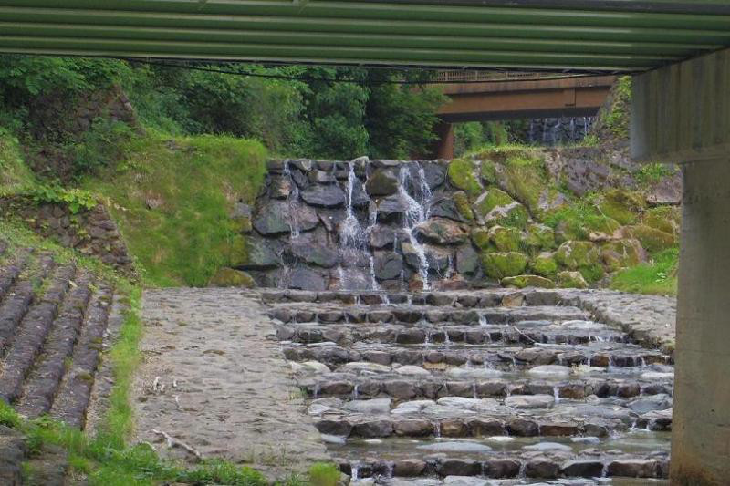 「親水公園」と呼ばれている、商店街脇の川に人工的な段々を造ってある場所があるのです。