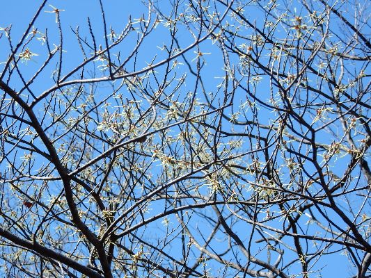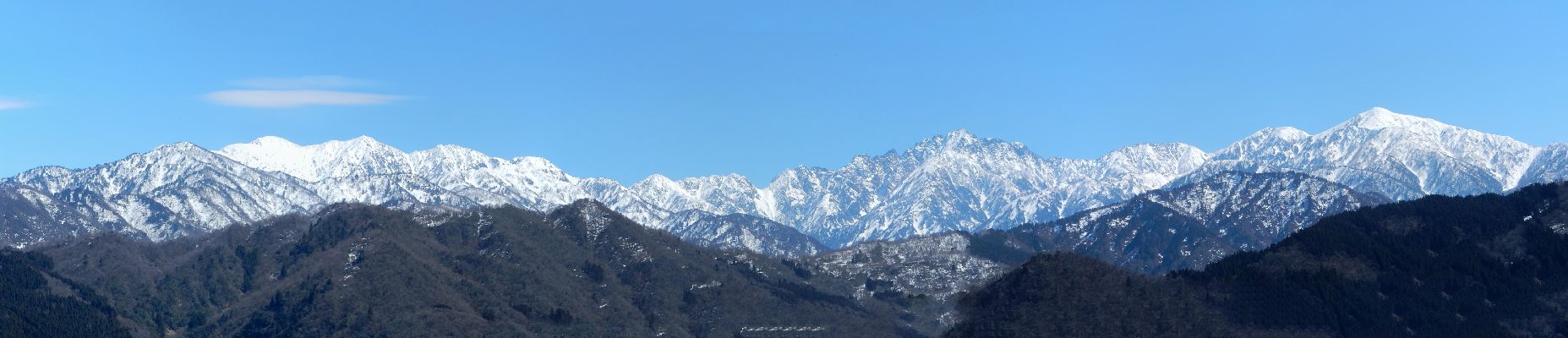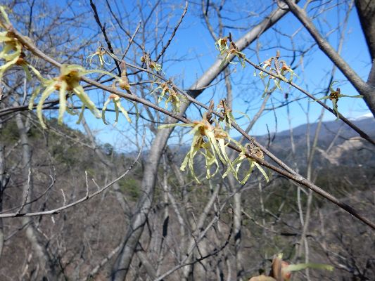 ハゲ山: (富山県上市町 :標高:464.7m) 気軽に自然を体感できる里山 山頂から見た 毛勝三山・剱岳・大日岳 マンサク 山頂から見た 富山湾と遠くに富山市