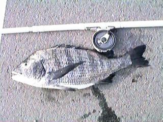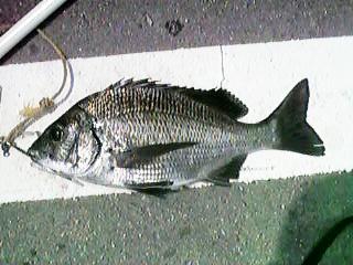 もう完全あきらめ状態で超前。イガイダンゴっていうの落とし込みならわかるが、前打ちの場合はどう誘えばいいのだろう、そう攻めればいいのだろうとあれこれと色々と思いふけっていました。しかしもうほとんど満喫状態の中、どういうアタリかわからぬまま、合わせを入れると本命がヒット! 2度ほど水面を割ったにもかかわらず、なかなか寄せることができない。型のわりに元気があり結構やりとりを楽しませてもらったのは33.5センチでした。