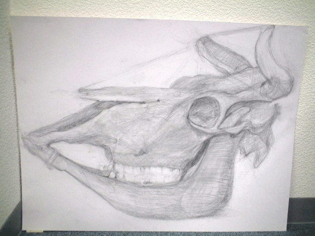 久しぶりに作品を載せてみましたwデッサンです…上のは石膏像です。下のは牛骨さん。本物の牛骨を目の前にしてちょっと驚きでしたね…可愛そうでデッサンに集中できなくて(^^;