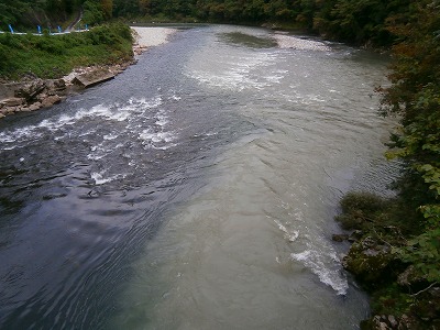 〇 合流部 (高原川が濁ってます。)