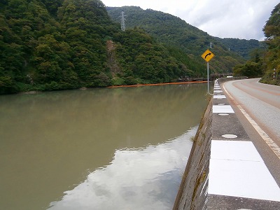 やはり、濁りの濃いブラックが、茂住ダム一杯に入ってます